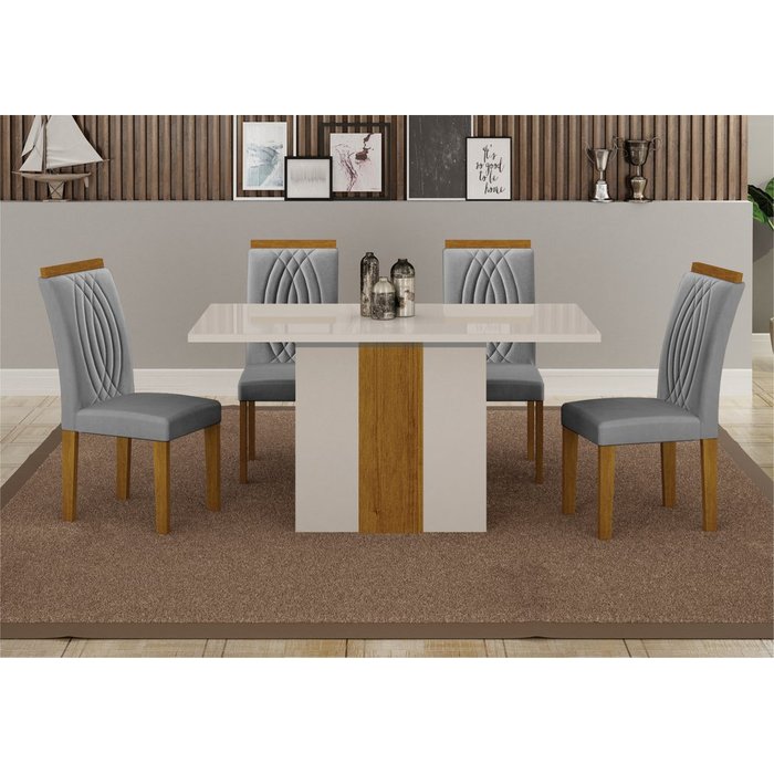 Conjunto Sala de Jantar Mesa Doha1,20m C/ 4 Cadeiras Moveis Leifer Off White/freijó Tampo Off White