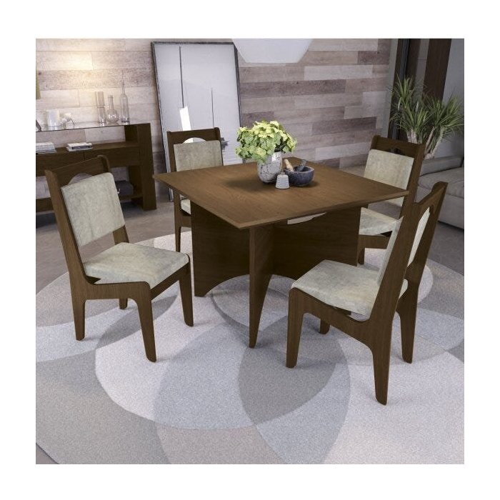 Conjunto Sala de Jantar Mesa e 4 Cadeiras Camomila Kappesberg Walnut Fosco (Marrom)/Bege