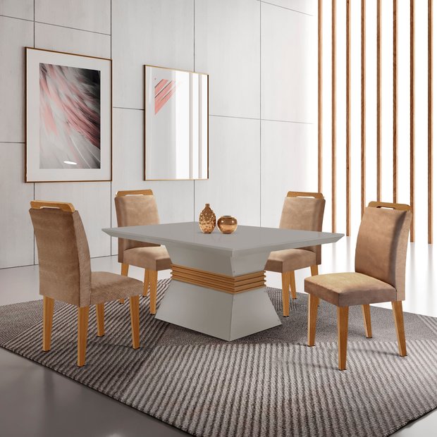 • Conforto em Cada Detalhe: As quatro cadeiras contam com assento e encosto estofados em espuma de qualidade, proporcionando uma experiência agradável em todas as refeições.
