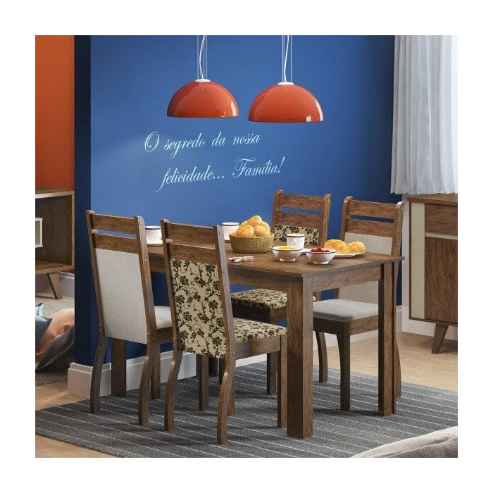 Conjunto Sala de Jantar Mesa e 4 Cadeiras Laila Madesa Rustic/Pérola/Floral