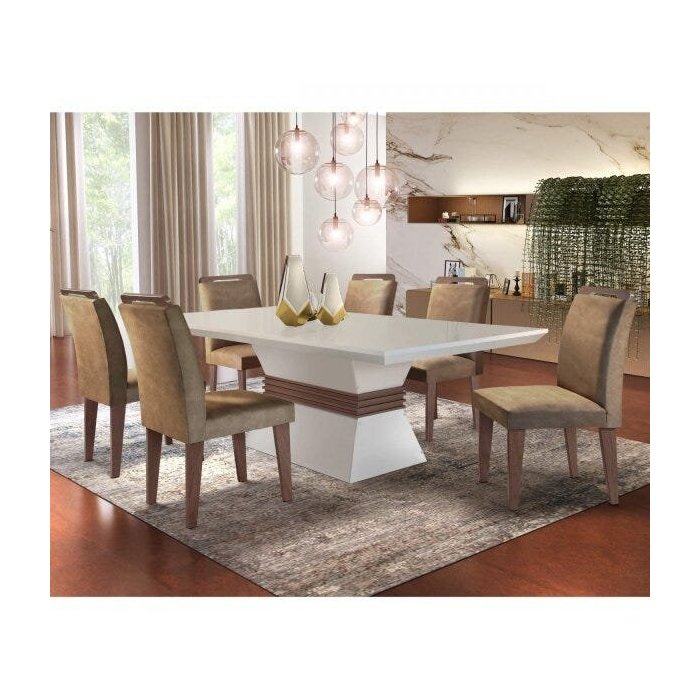 Conjunto Sala de Jantar Mesa e 6 Cadeiras Dari Espresso Móveis Animalle Chocolate/Off White/Café