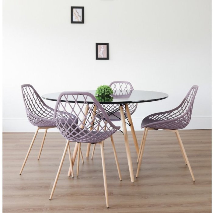 Conjunto Sala de Jantar Mesa Eiffel Redonda 120cm Tampo MDF com 4 Cadeiras Cloe Base Aço