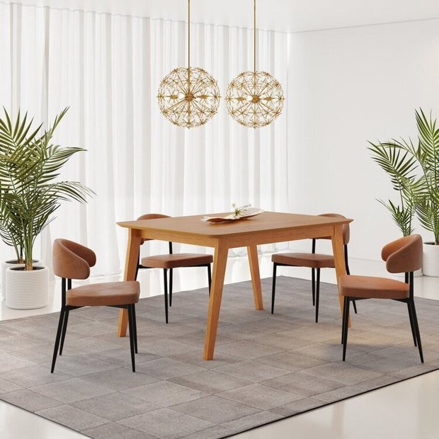 - Design Moderno: As linhas retas e o acabamento refinado da mesa, combinados com o design curvo e sofisticado das cadeiras Bless, criam uma composição harmoniosa e atual para o seu espaço.