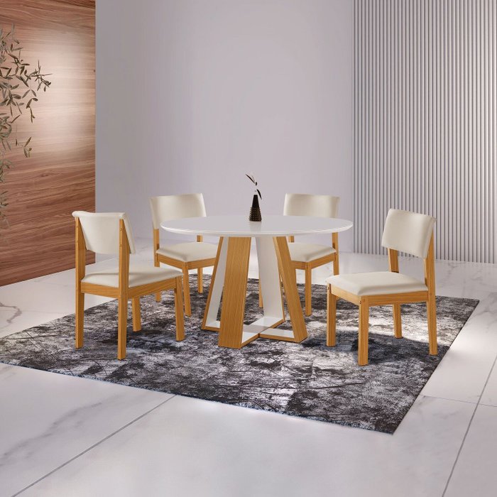 Conjunto Sala de Jantar Mesa Grécia 4 Cadeiras Jade Cinamomo/Creme/Off White
