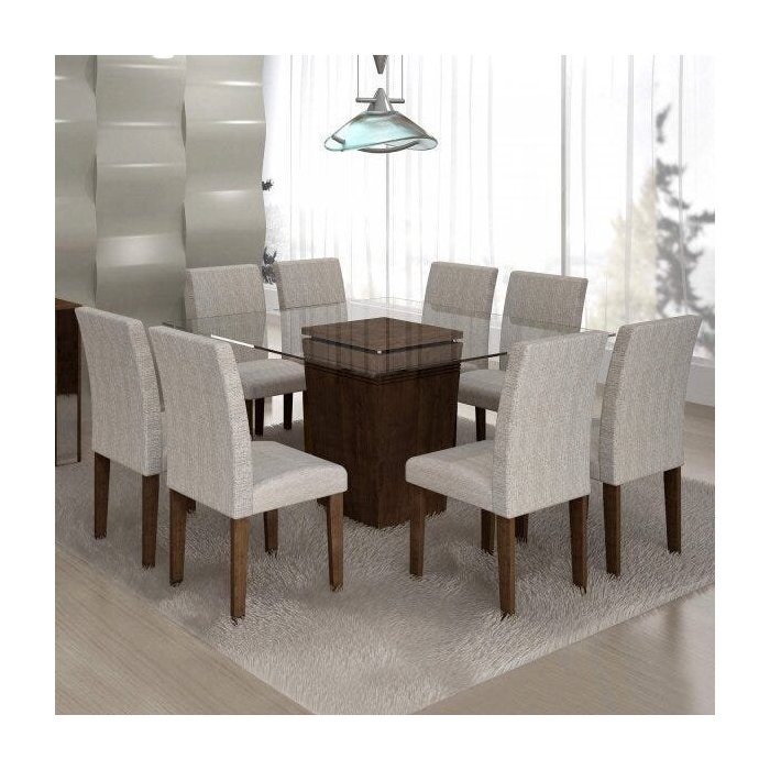 Conjunto Sala de Jantar Mesa Ômega Tampo de Vidro 8 Cadeiras Classic Cel Móveis