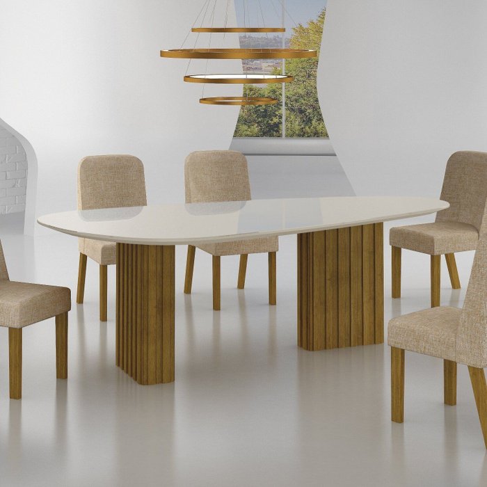 Conjunto Sala de Jantar Mesa Orgânica com Vidro 6 Cadeiras Isis