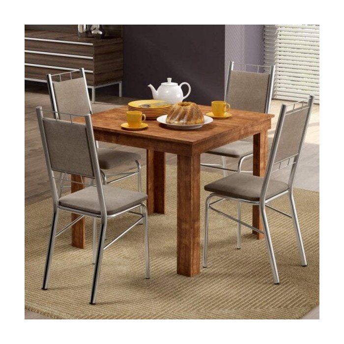 Conjunto Sala de Jantar Mesa Quadrada 4 Cadeiras Carraro Conhaque/Cromado