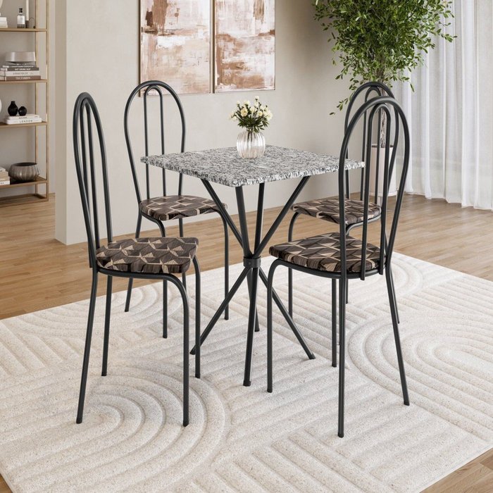 Conjunto sala de Jantar Mesa Quadrada 70cm Tampo Granito com 4 Cadeiras Leia