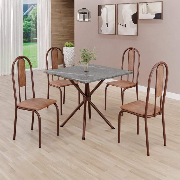 Conjunto Sala de Jantar Mesa Quadrada 70x70cm Tampo Granito Topázio 4 Cadeiras Linda Yescasa Marrom