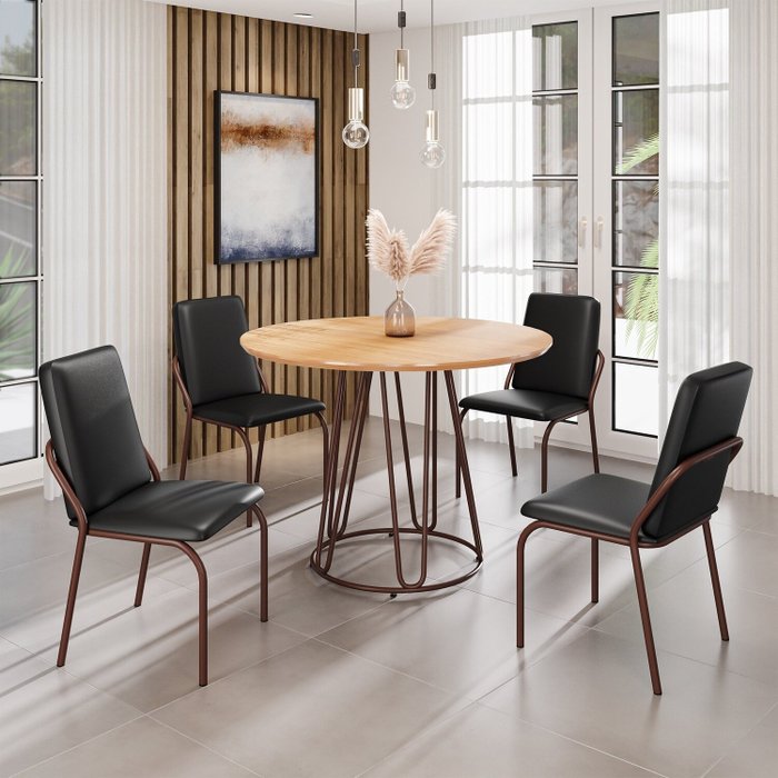 Conjunto Sala de Jantar Mesa Redonda 100cm Base Omega Tampo Mdf Malibu Preto/Marrom