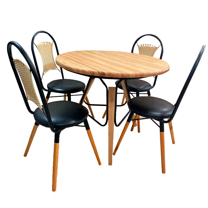 Conjunto Sala de Jantar Mesa Redonda de Madeira Maciça 4 Cadeiras Jakarta Goldecor
