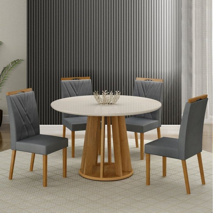 Conjunto Sala de Jantar Mesa Redonda Rose com 4 Cadeiras Madeira Maciça Lara