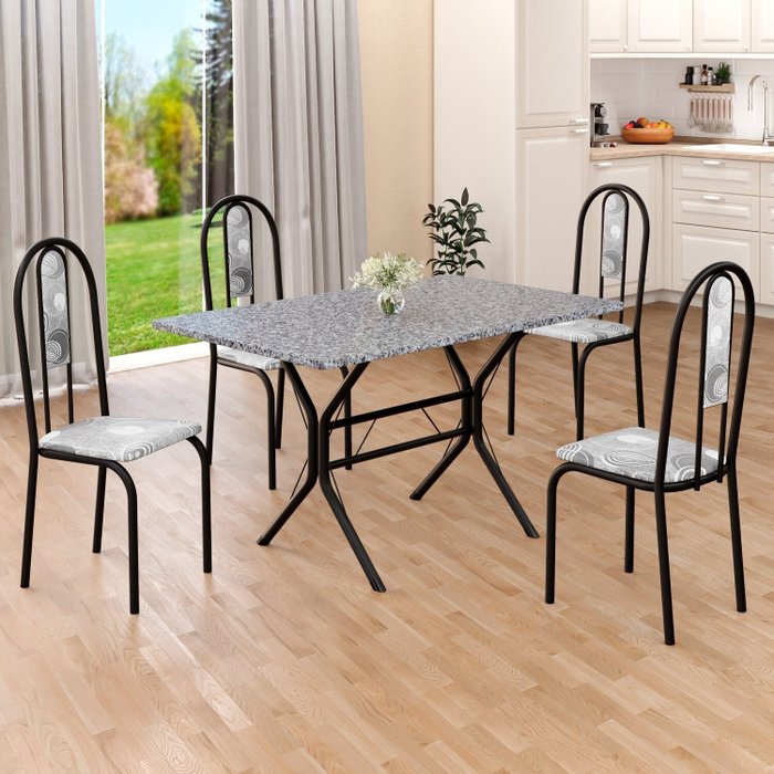 Conjunto Sala de Jantar Mesa Retangular 100x60cm Tampo Granito Ocre 4 Cadeiras Linda Yescasa Paraopeba/Preto