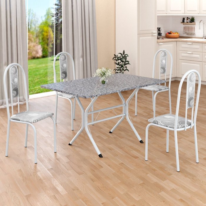 Conjunto Sala de Jantar Mesa Retangular 100x60cm Tampo Granito Ocre 4 Cadeiras Linda Yescasa Paraopeba/Branco