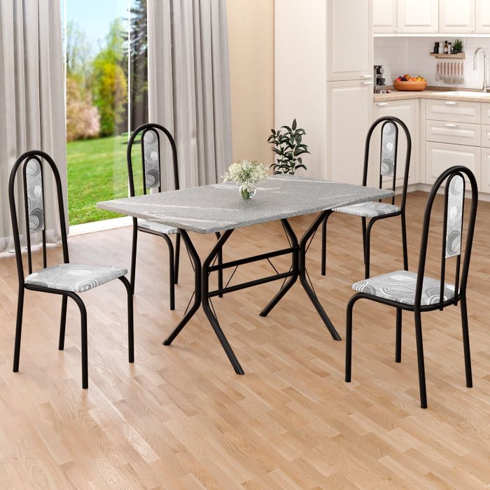 Conjunto Sala de Jantar Mesa Retangular 100x60cm Tampo Granito Topázio 4 Cadeiras Linda Yescasa Paraopeba/Preto