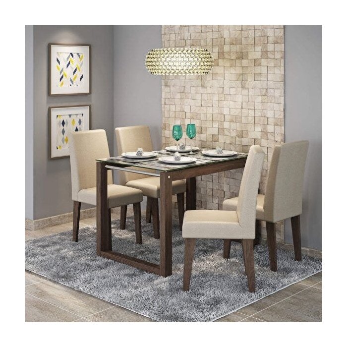 Conjunto Sala de Jantar Mesa Tampo de Vidro Anita 4 Cadeiras Milena Cimol