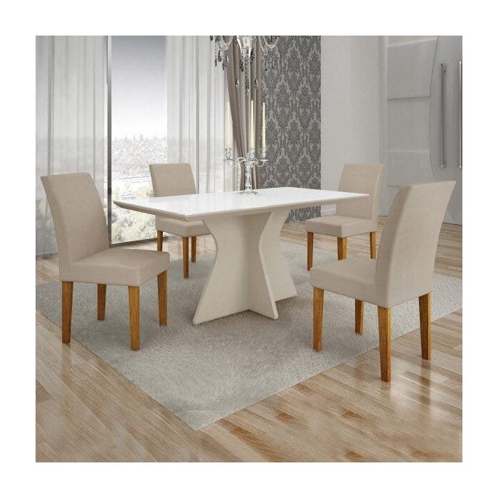 Conjunto Sala de Jantar Mesa Tampo de Vidro Branco Creta 4 Cadeiras Olímpia Leifer