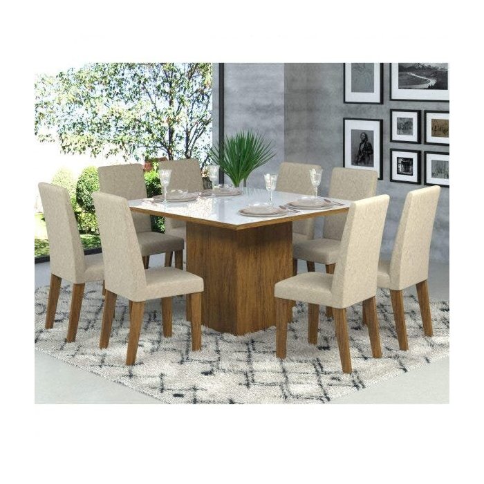 Conjunto Sala de Jantar Mesa Tampo de Vidro e 8 Cadeiras Catarina Espresso Móveis