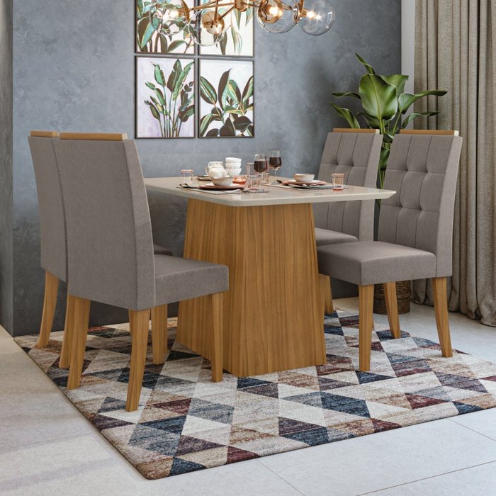 Conjunto Sala de Jantar Mesa Tampo em Vidro Nevada 120 4 Cadeiras Celebrare Móveis Lopas