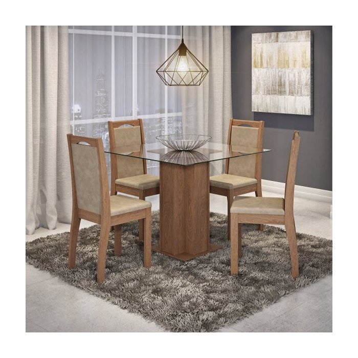 Conjunto Sala de Jantar Mesa Tampo em Vidro Sophia 4 Cadeiras Livia Espresso Móveis