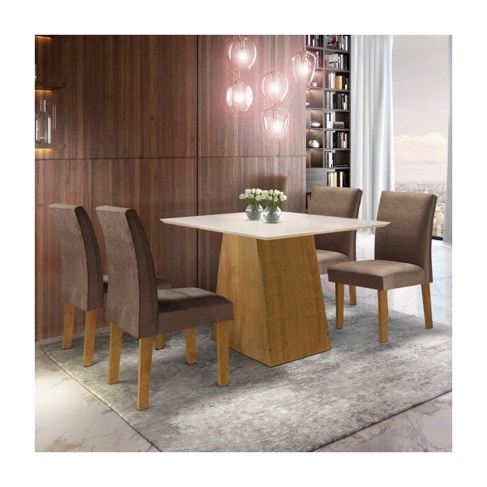 Conjunto Sala de Jantar Mesa Tampo Mdf Arezo 4 Cadeiras Espanha Espresso Móveis