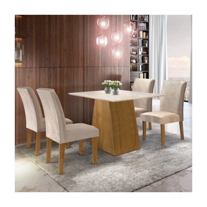 Conjunto Sala de Jantar Mesa Tampo Mdf Arezo 4 Cadeiras Espanha Espresso Móveis Ypê