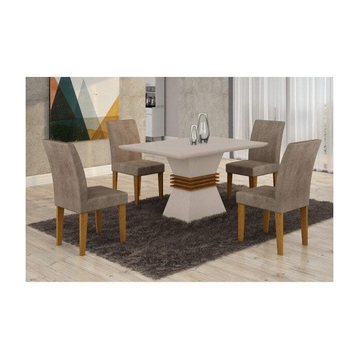 Conjunto Sala de Jantar Mesa Tampo Mdf Clarice 1200 e 4 Cadeiras Grécia