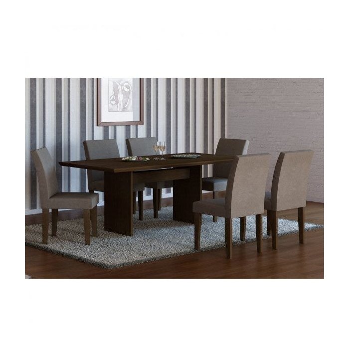 Conjunto Sala de Jantar Mesa Tampo Mdf Quina Curva Grécia 6 Cadeiras Grécia Rufato Castor/Animalle Chocolate