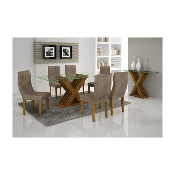 Conjunto Sala de Jantar Mesa Tampo Vidro 160cm 6 Cadeiras Verona Rufato