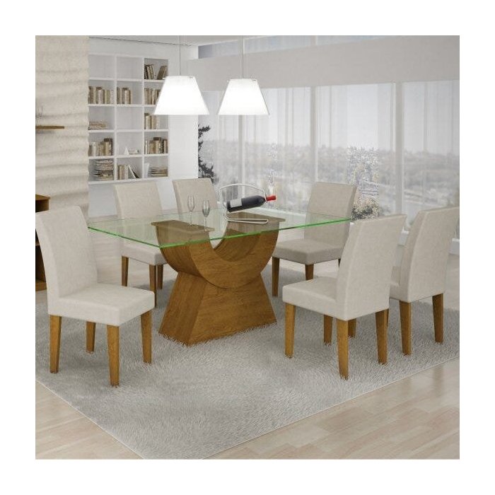 Conjunto Sala de Jantar Mesa Tampo Vidro 180cm Malta 6 Cadeiras Grécia Malta/grécia Rufato