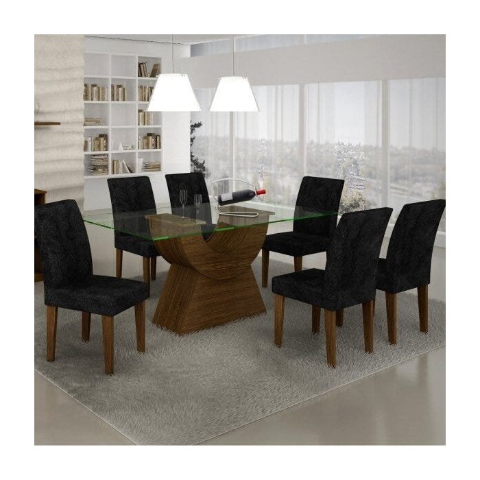 Conjunto Sala de Jantar Mesa Tampo Vidro 180cm Malta 6 Cadeiras Grécia Malta/grécia Rufato Ypê/Penna Preto