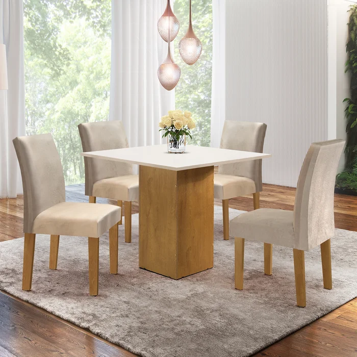 Conjunto Sala de Jantar Mesa Tampo Vidro Madri 4 Cadeiras Espanha Espresso Móveis Ypê/Off White