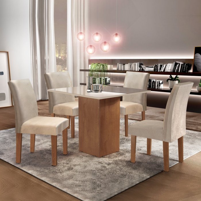 Conjunto Sala de Jantar Mesa Tampo Vidro Madri 4 Cadeiras Espanha Espresso Móveis