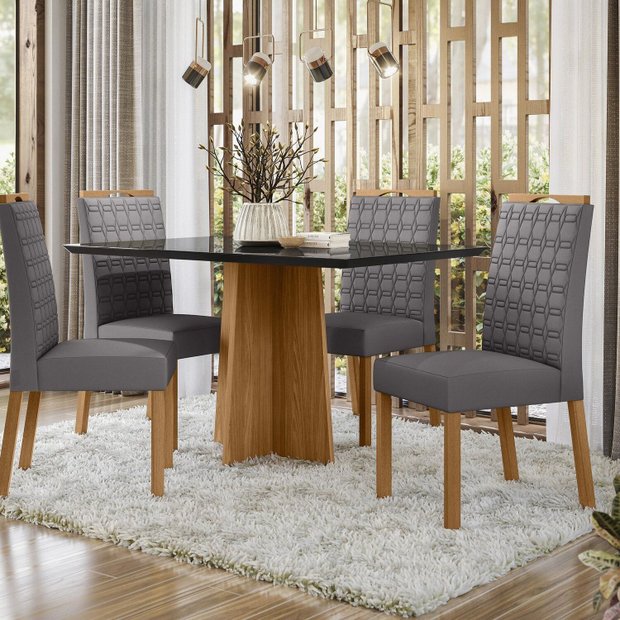 Conjunto Sala de Jantar Mesa Tampo Vidro/mdf Anitta 135cm com 4 Cadeiras Mariah Preto