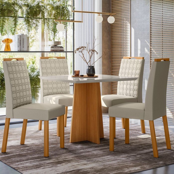 Conjunto Sala de Jantar Mesa Tampo Vidro/MDF Anitta 90cm com 4 Cadeiras Mariah Off White