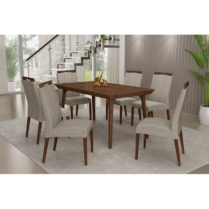 Conjunto Sala de Jantar Pamela 1.55 Imbuia Tampo de Madeira C/ 06 Cadeiras Betina Caede Pamela 155