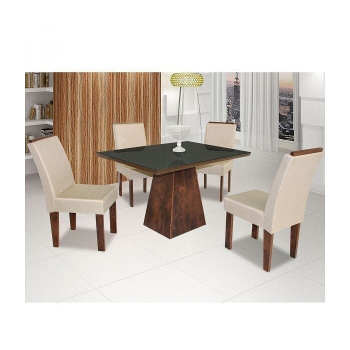 Conjunto Sala de Jantar Tampo de Vidro com 4 Cadeiras Recife Móveis São Carlos