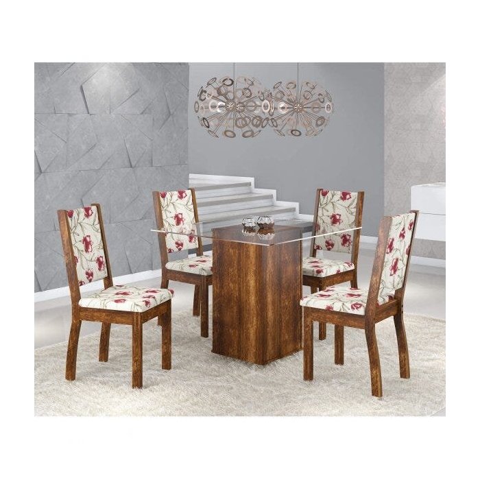 Conjunto Sala Jantar Mesa Vitória 4 Cadeiras Capri Sonetto Móveis Rústico/Amarilis