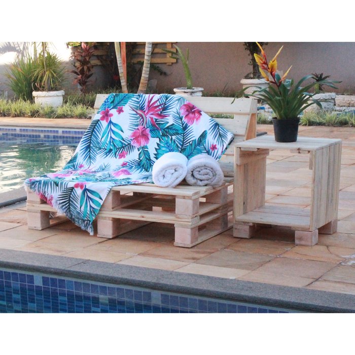 Conjunto Sala Sofá Rústico de Madeira Palete em Pinus com Encosto Lugares + Mesa de Apoio
