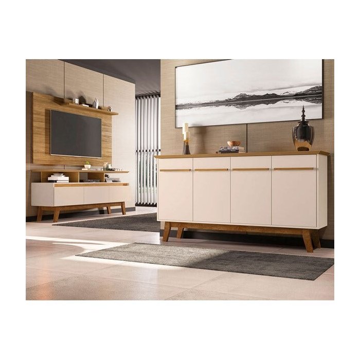 Conjunto Rack Rubi 3 portas Com Painel Chanel para TV 55" Aparador Opala