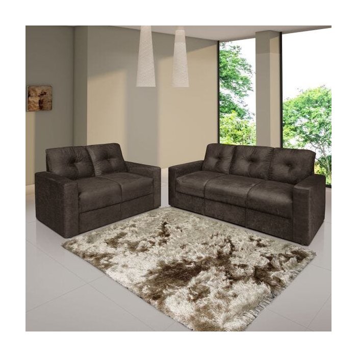 Conjunto Sofá 2 e 3 Lugares Zinhão Tecido Suede Marrom