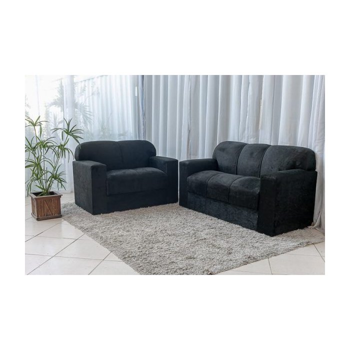 Conjunto Sofá 3 e 2 Lugares Xaropinho Suede Preto - Al Móveis