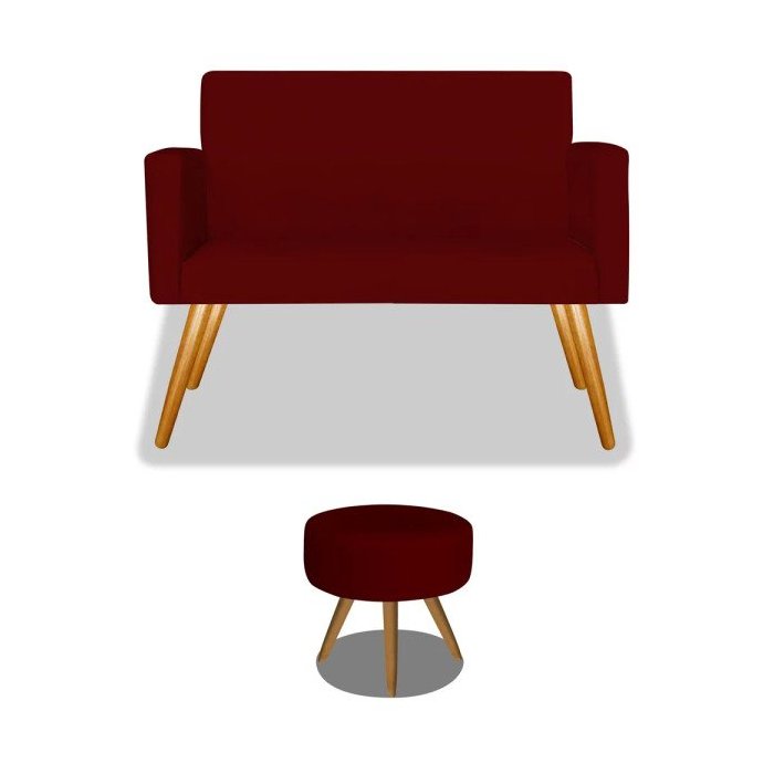Conjunto Sofá Beatriz Pés Palito Divã Namoradeira 2 Lugares Mais Puff Redondo Sofia Bordô