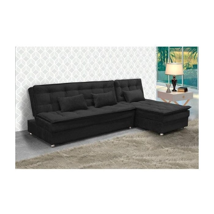 Conjunto Sofá Cama 2 Lugares com Chaise Penélope Preto