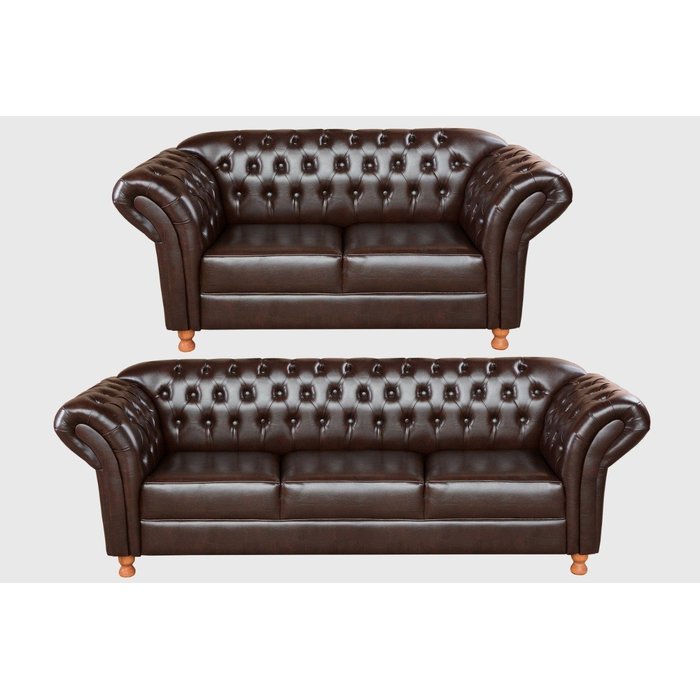 Conjunto Sofá Chesterfield Imperatriz 2 e 3 Lugares Capitonê Clássico - Couríssimo Café
