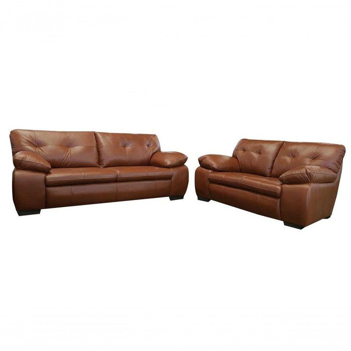 Conjunto Sofá de Couro Marselha 3 e 2 Lugares Conhaque com Brilho - Mempra