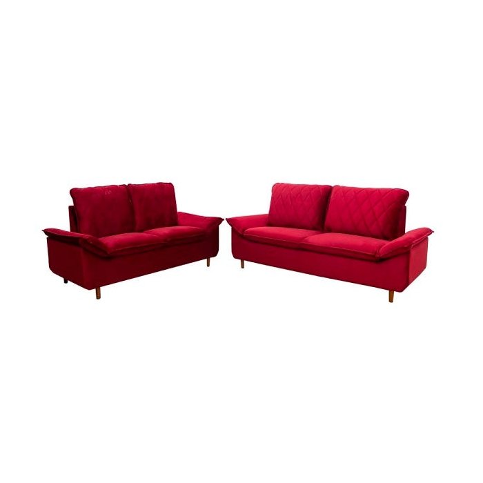 Conjunto Sofá Hellen Ímola 3 e 2 Lugares em Tecido Suede Platinum - Vinho