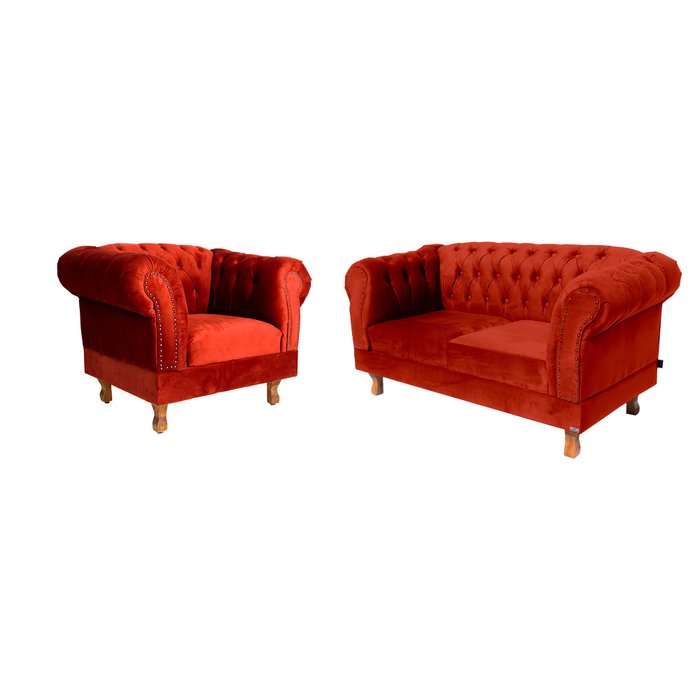 Conjunto Sofa Namoradeira Chesterfield Capitoné Suede VERMELHO.