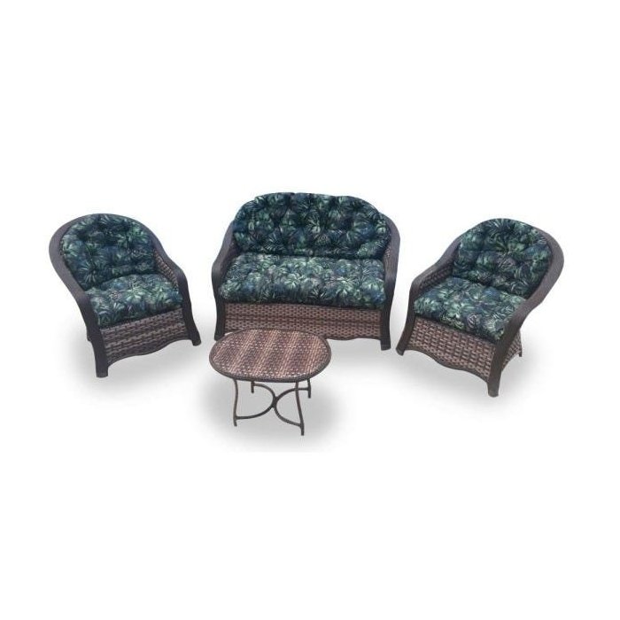 Conjunto Sofá para Jardim Janaína Fibra Sintética Sofá 2 Lugares 2 Poltronas e Mesa Centro - Tecido
