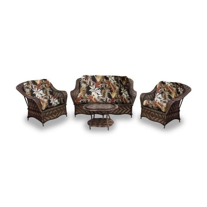 Conjunto Sofá para Jardim Naja Fibra Sintética Sofá 2 Lugares 2 Poltronas e Mesa Centro - Tecido Rev